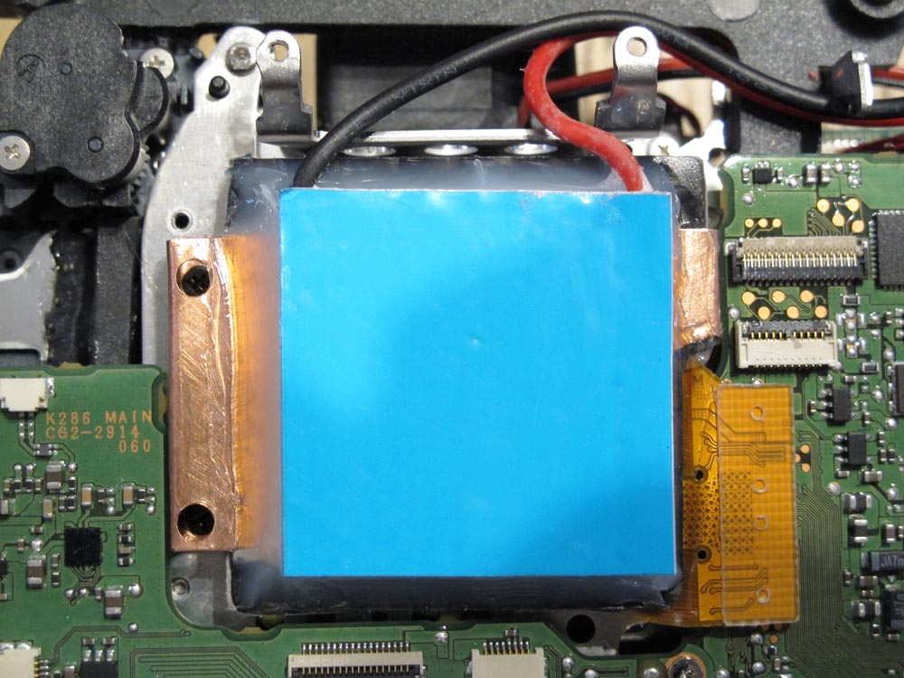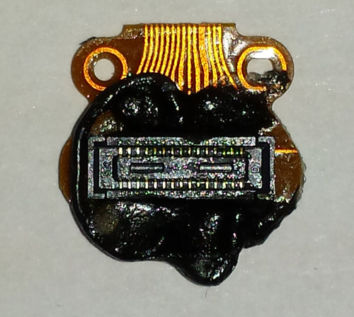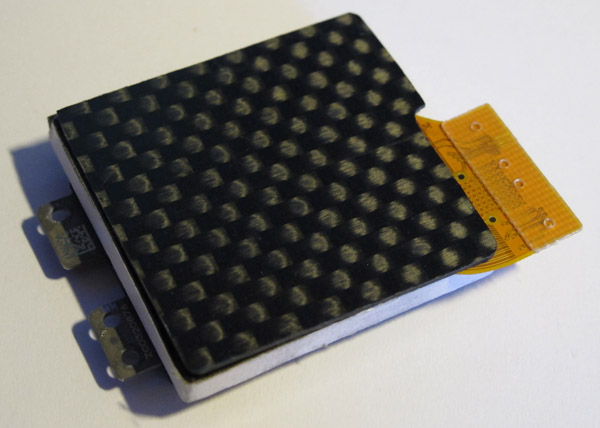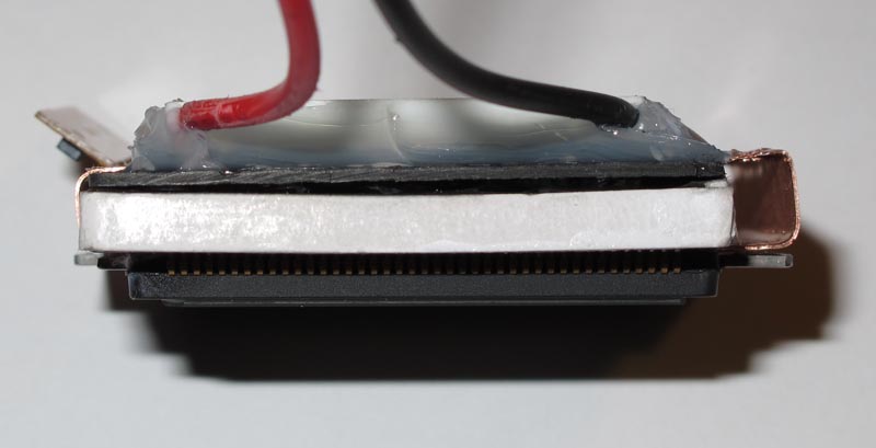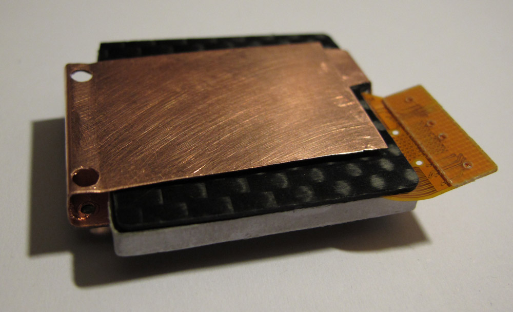 Pour pouvoir installer ce doigt caloporteur , je vais créer une surface plane à l'arrière du capteur ,en y deposant de la résine sur laquelle reposera une petite plaque de carbone.