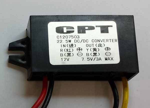 Pour l'alimentation de l'appareil , j'ai trouvé sur ebay un convertisseur 12V / 7,5 V 3A