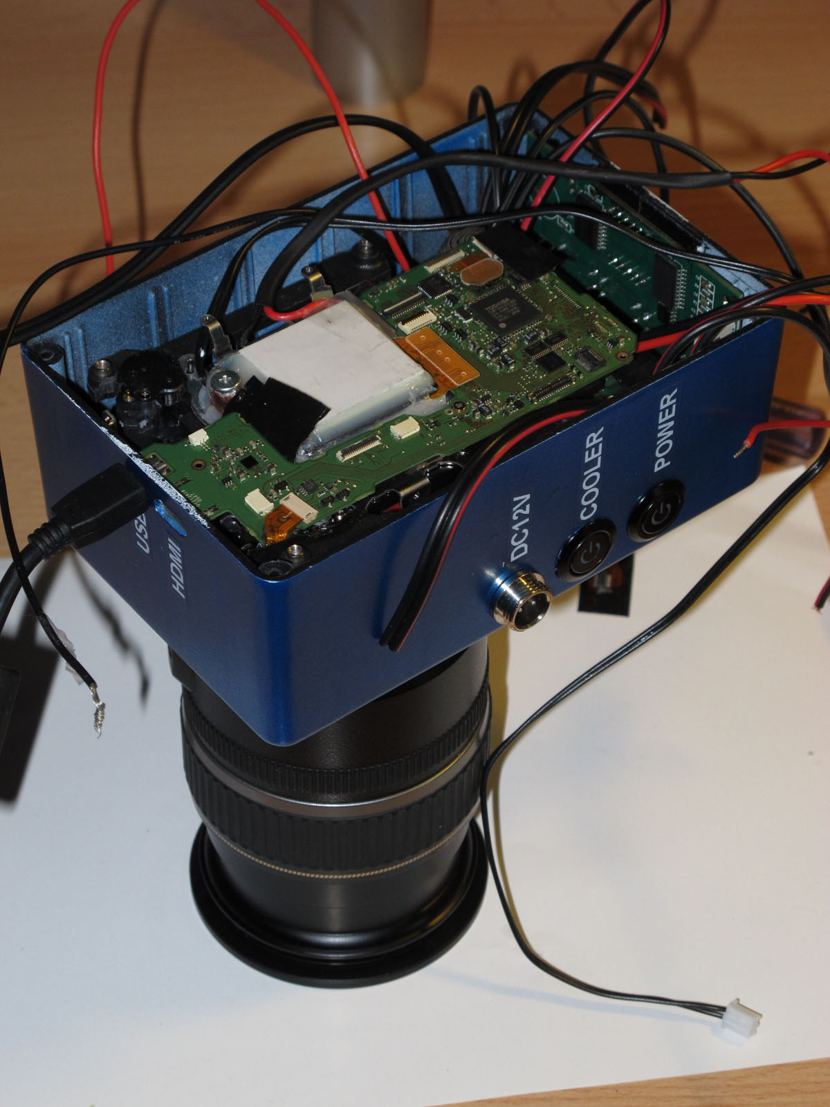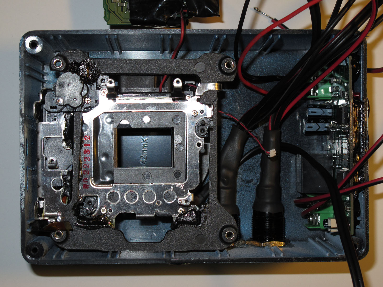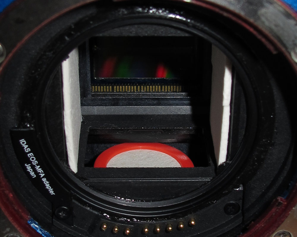 La partie la plus sensible dans la conception de ce reflex numérique refroidi , et surtout l'adaptation sur un EOS 600D est l'espace trés réduit entre le capteur CMOS et sa carte controleur.