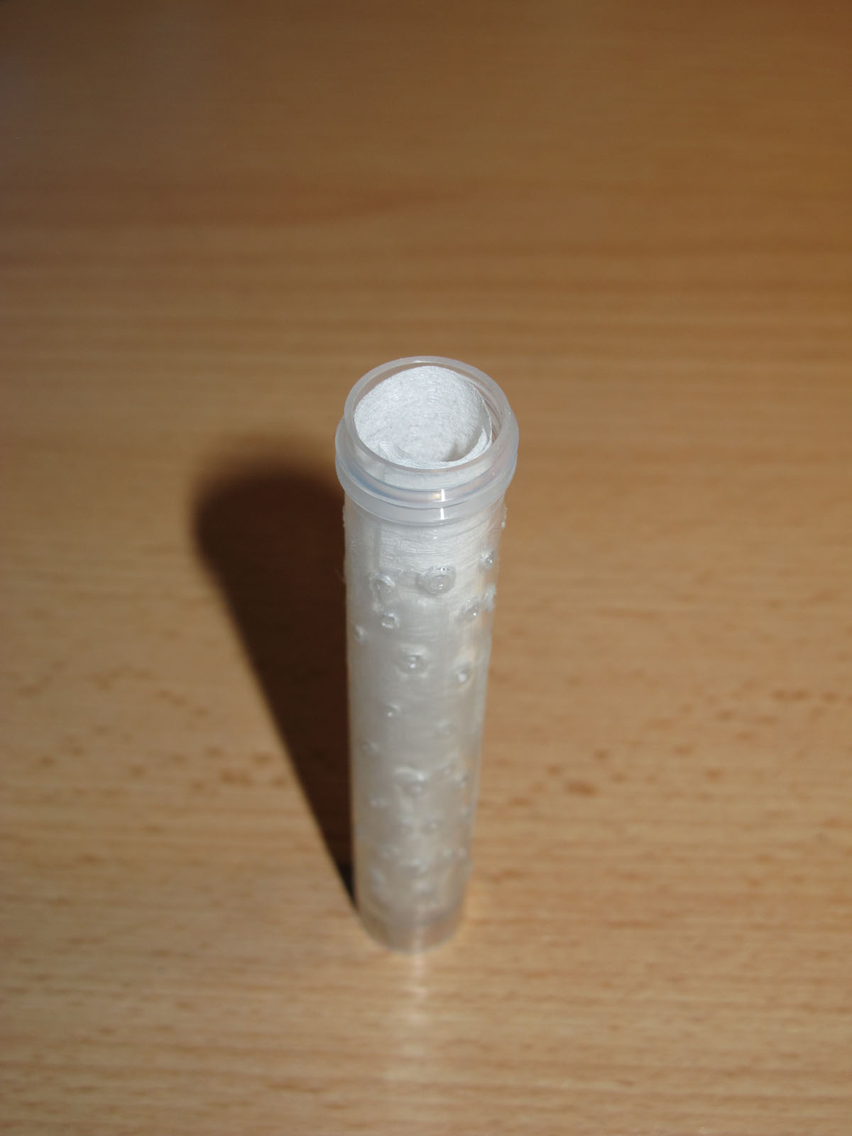 J'ai percé un tube à essais sur toute sa surface extérieur pour que l'air puisse y pénétrer