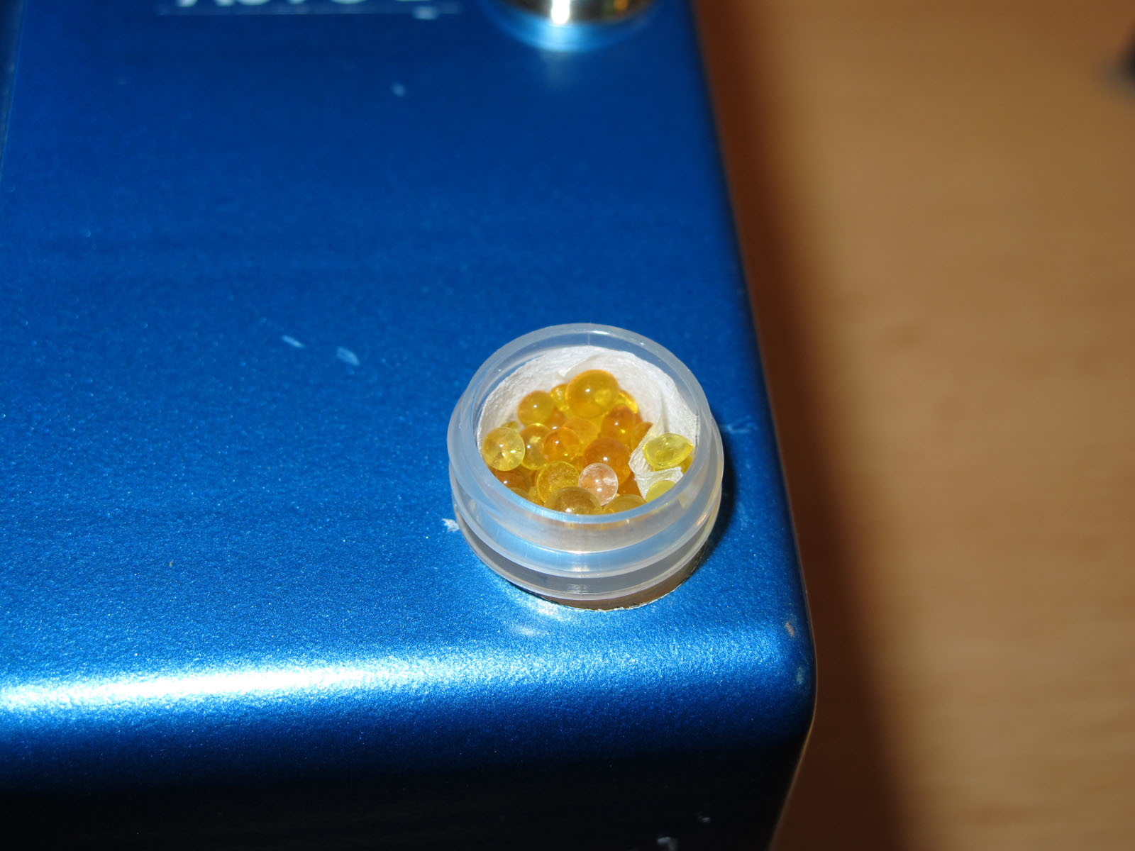 Il ne reste plus qu'à remplir celui-ci de silicagel changant de couleur lorsque les billes ont