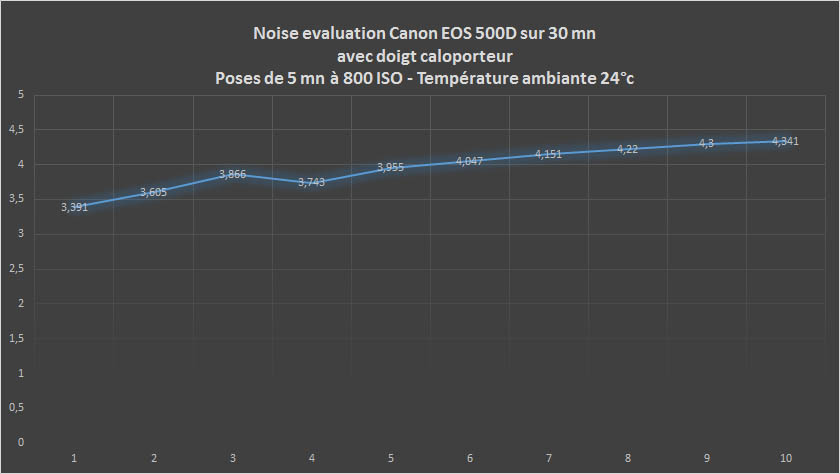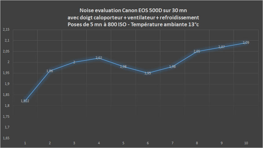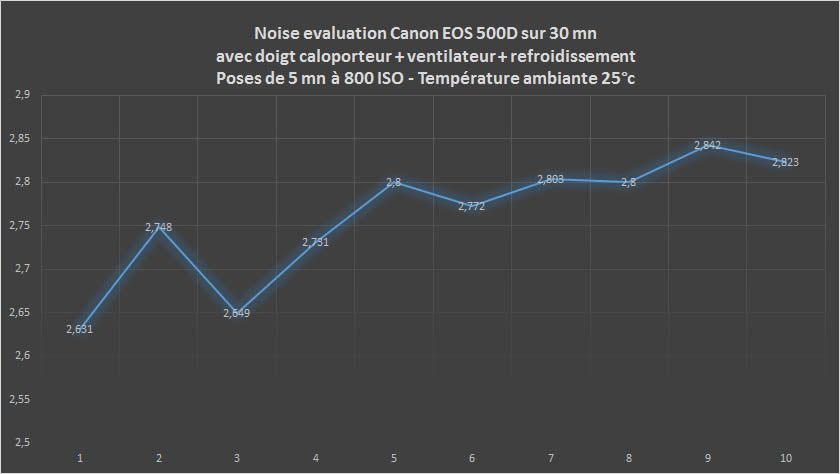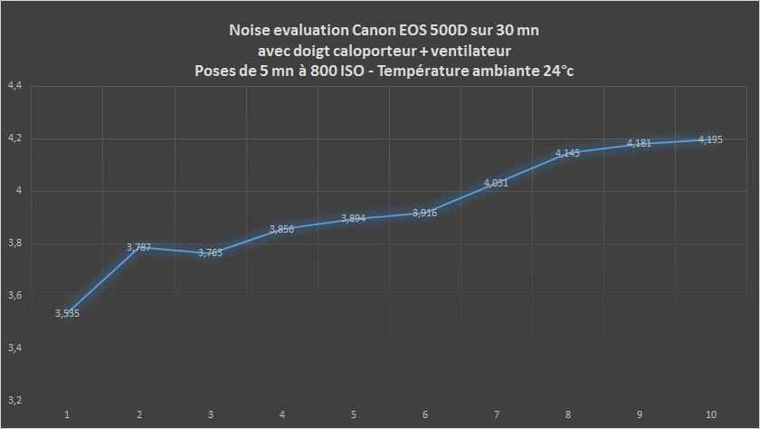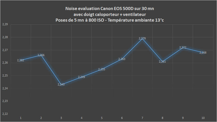 Voici maintenant les mesures de bruit relevées et analysées grâce au logiciel Pixinsight