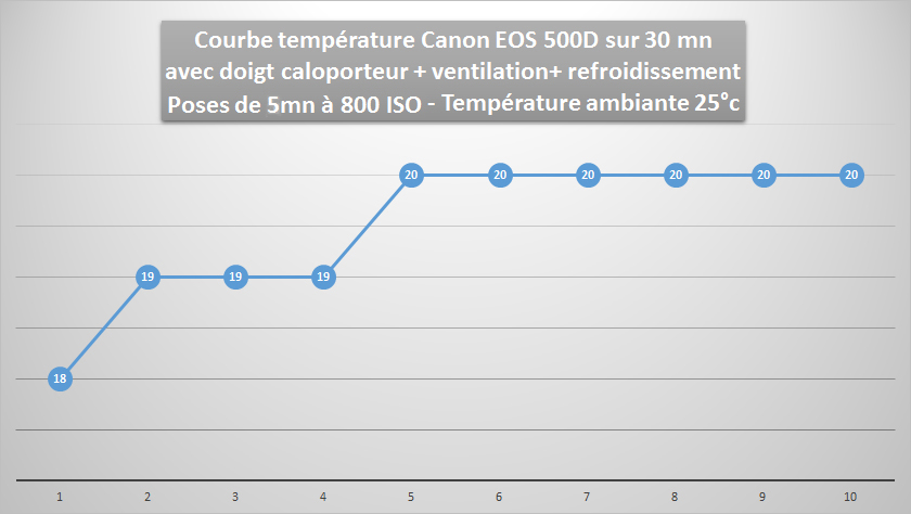 Le refroidissement passif permet de reduire la température du Capteur CMOS à environ 5°C au dessous de la température ambiante là où auparavant l'écart est de près de 15 °C , soit un gain de 20°C par rapport à un boitier non modifié et d'un gain de 8 à 10°C par rapport à un boitier équipé d'un refroidissement passif.