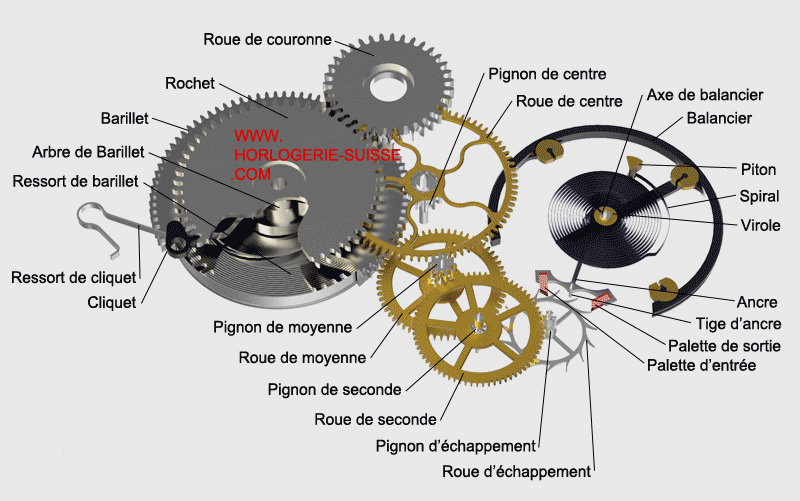 La force motrice arrive à l'échappement qui va la distribuer petit à petit au balancier.