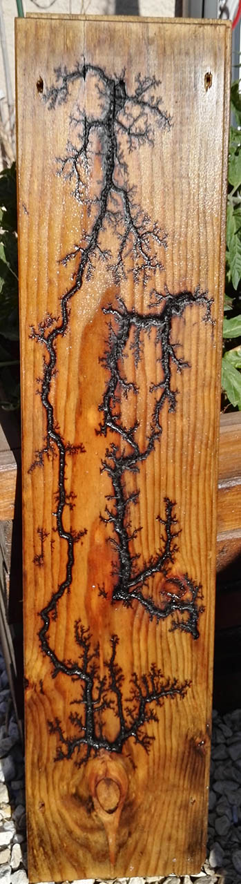 Avec un transformateur pour Neon de 10000 Volts / 100 mA sur un planche de Pin.