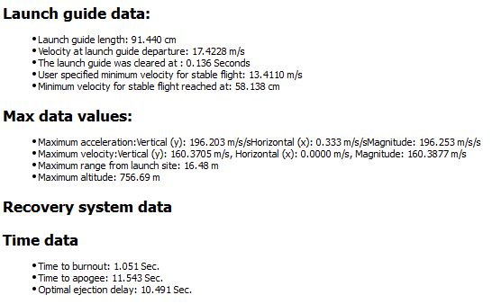 Avec un poids final de 965 grammes , elle embarque un altimètre qui enregistrera les différents paramètres de vol sur une carte SD et affichera l'altitude de l'apogée sur un écran Oled directement consultable à l'atterrissage.