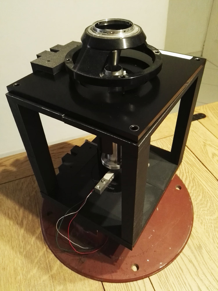 L'ensemble est monté sur un étage modélisé et imprimé en 3D dont vous pouvez voir les détails dans les 2 vidéos suivantes.