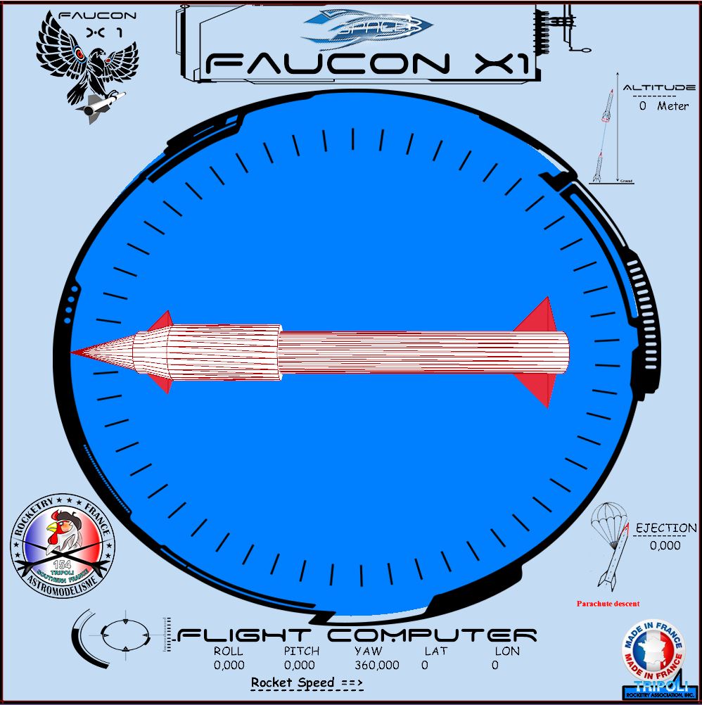 J'ai mis au point un petit soft qui récupère ces données , affiche en temps réel la représentation 3D dans l'espace de la fusée , et affiche dans le même temps toute les informations dans la fenêtre.