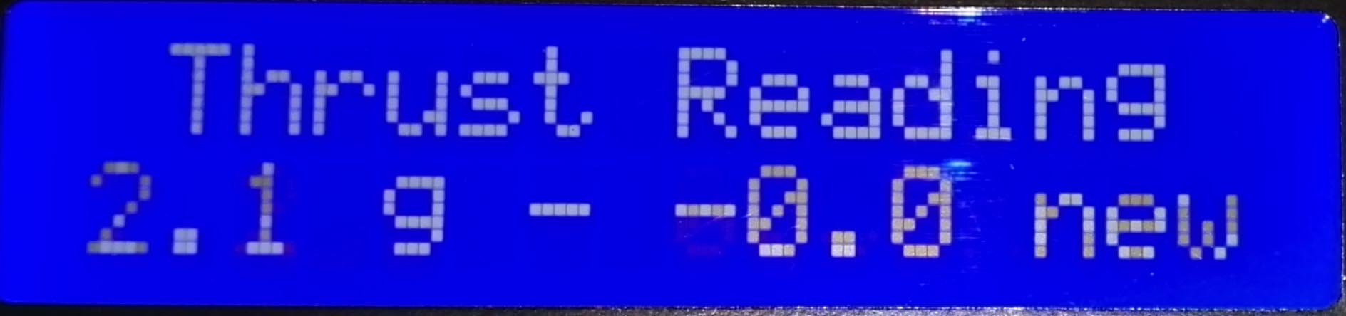 Le boitier passe ensuite en mode mesure , l'afficheur permet de lire la poussée excernée sur la cellule en Gramme et en Newtons.