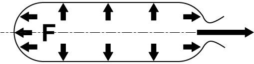 La force de propulsion d'une fusée est une force de pression appliquée sur l’avant du propulseur non équilibrée en raison de l’orifice pratiqué à l’arrière.