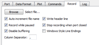 Avant d'appuyer sur le bouton du boitier , les options Connect et Record doivent être validée sous peine d'effectuer un test à blanc sans enregistrement des données.